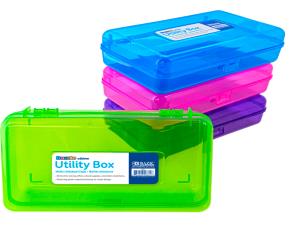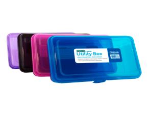 CAJA PLASTICA TRANSPARENTE C/TAPADERA P.USO MULTIPROPOSITO (13.25"X4.75"X2.5") SURTIDO DE COLORES